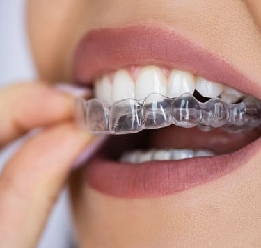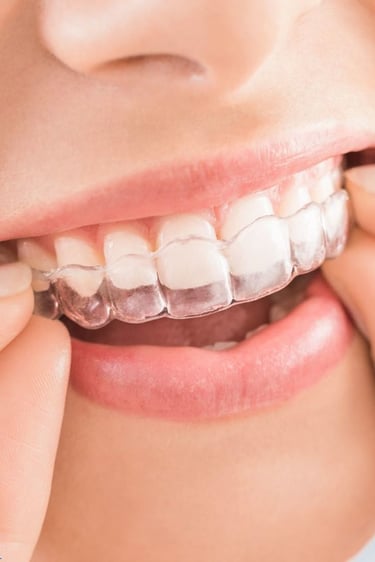 Invisalign uses a series of custom-made, clear aligners to gently move your teeth into their ideal position ,