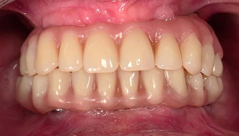 A prosthesis supported by 4 dental implants—often referred to as “All-on-4”—is a modern, effective solution for patients missing most or all teeth in one arch.